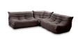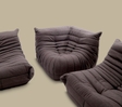 Комплект з двомісного дивану, двох крісел і пуфа. Може бути розмірами 255 х 255см, або в іншому варіанті, залежно від положення модулів. Тканина світло коричневого кольору, стилтьна рогожка. Модулі кріпляться ременями з велкро по дну. Перед замовленням — надсилаємо зразки тканини.